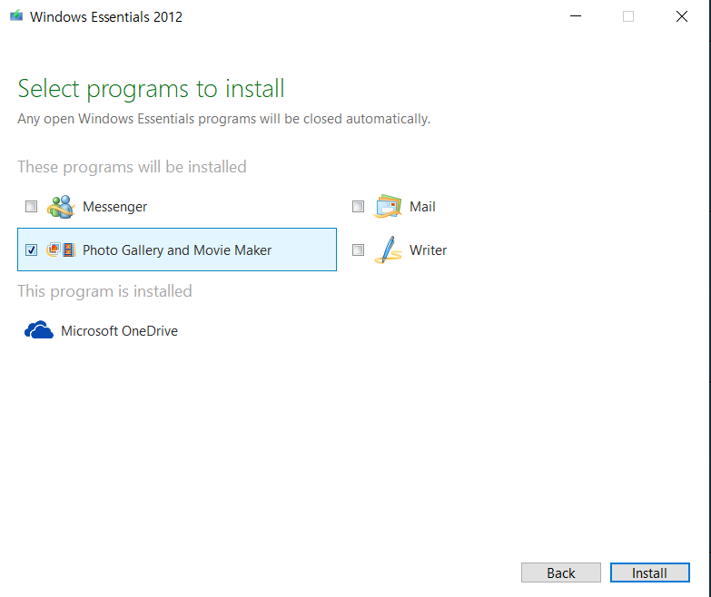 ☞ 'Photo Gallery and Movie Maker'에 체크하고 나머지는 체크 해제 한 다음 'install' 버튼을 누릅니다.